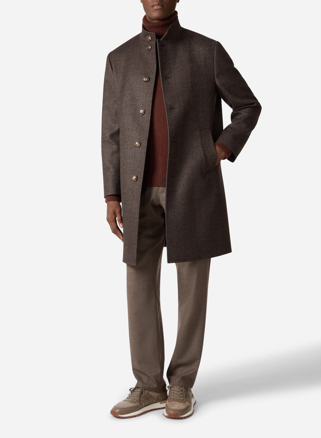 A study in refined restraint, this single-breasted coat channels the quiet authority of Italian tailoring....