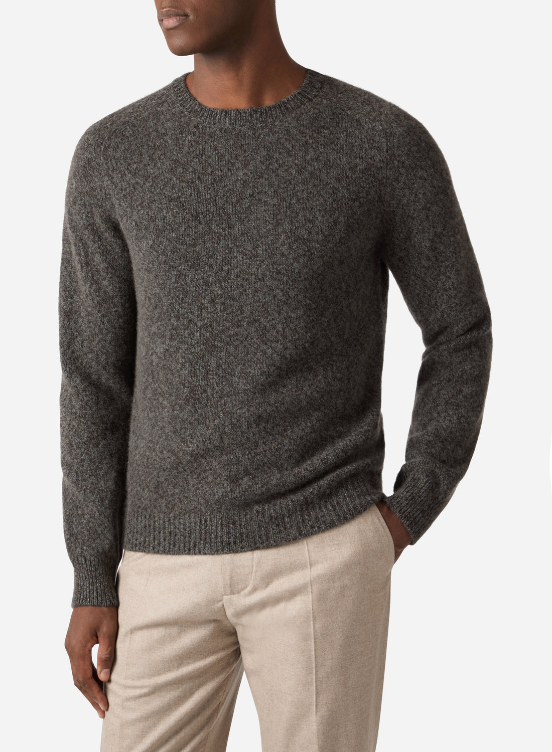 This crewneck is crafted from cashmere using a twist construction that intertwines multiple yarn shades...