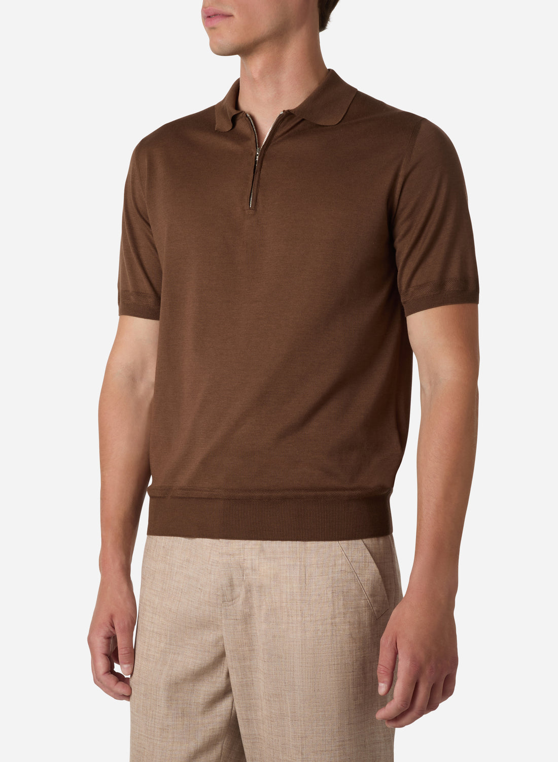 COTTON AND SILK SHORT SLEEVES ZIP POLO
