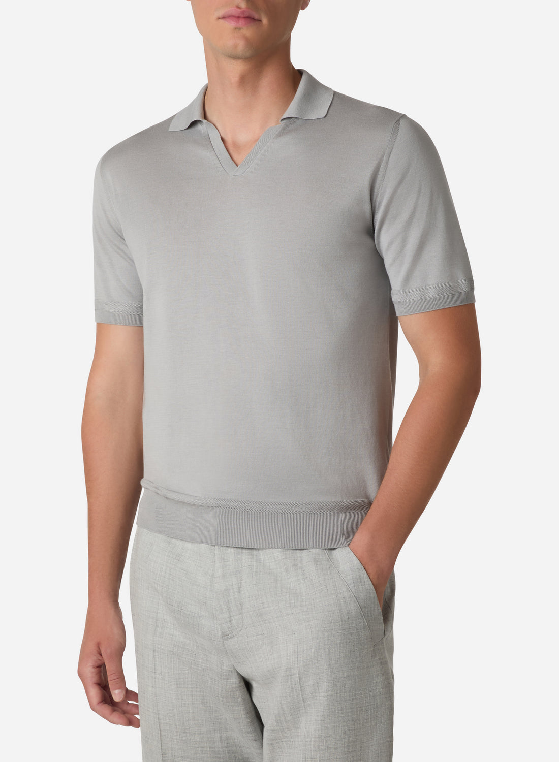 COTTON AND SILK SHORT SLEEVES V NECK POLO