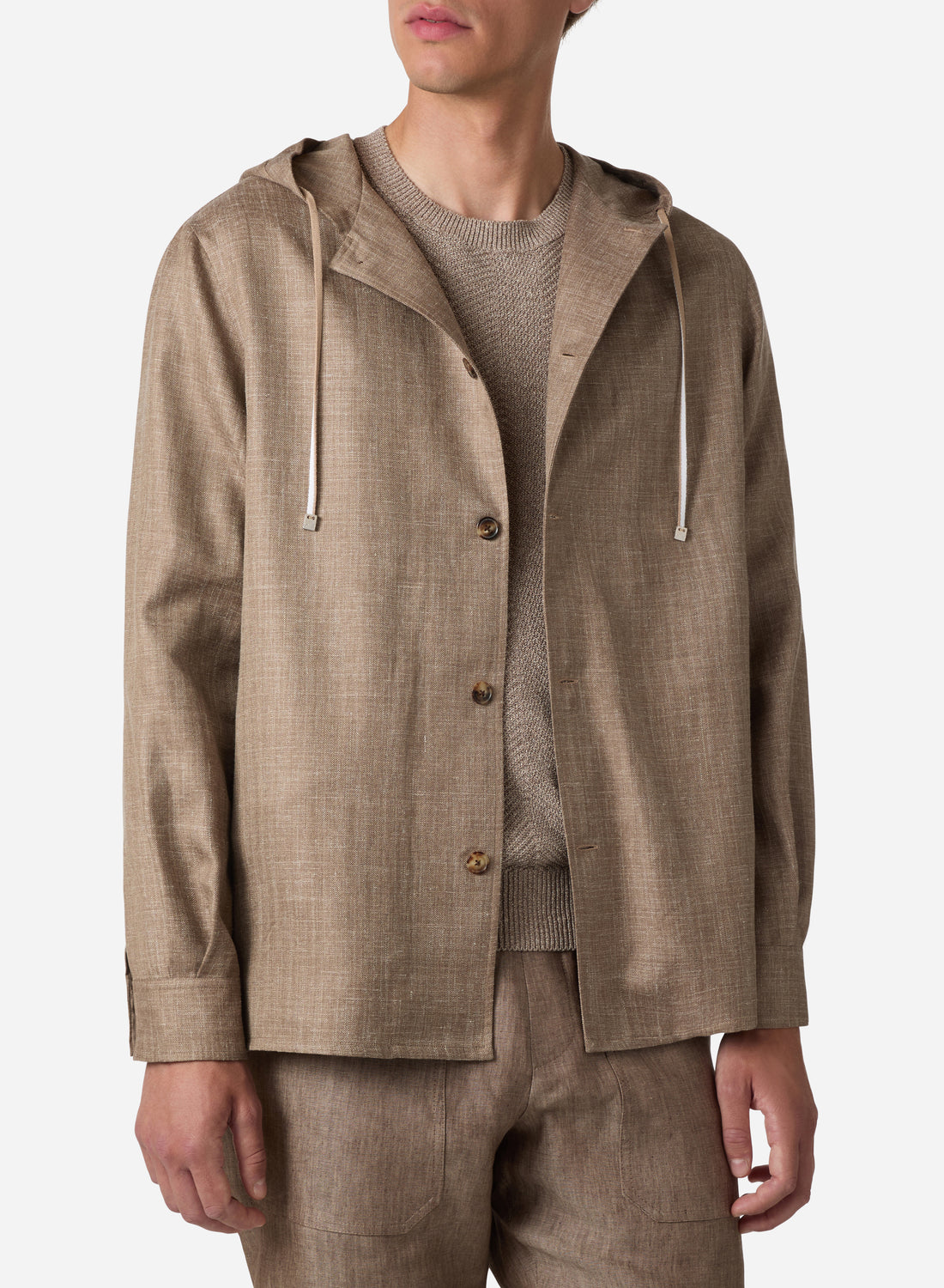 LINEN SILK COTTON HOODIE WITH SUEDE DETAILS