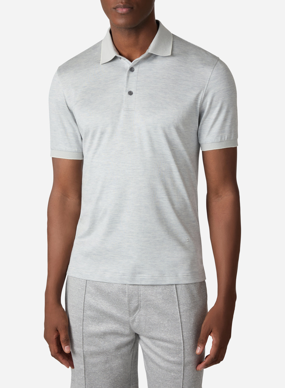 The V-neck polo refined through superior materials and Italian craftsmanship. Light Grey— pale and luminous...