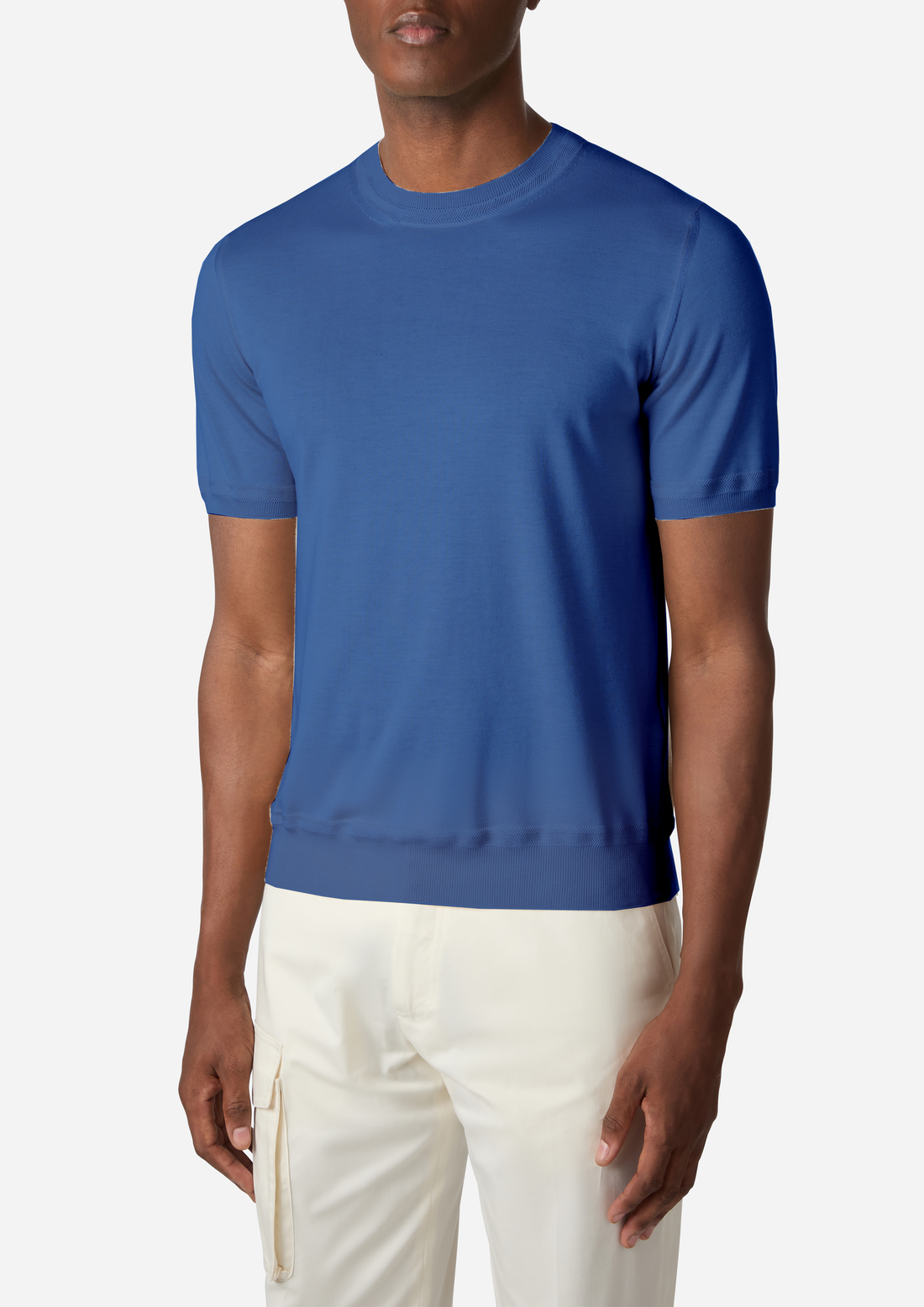 A refined T-shirt constructed from cotton and silk, offering a subtle luster and enhanced drape...