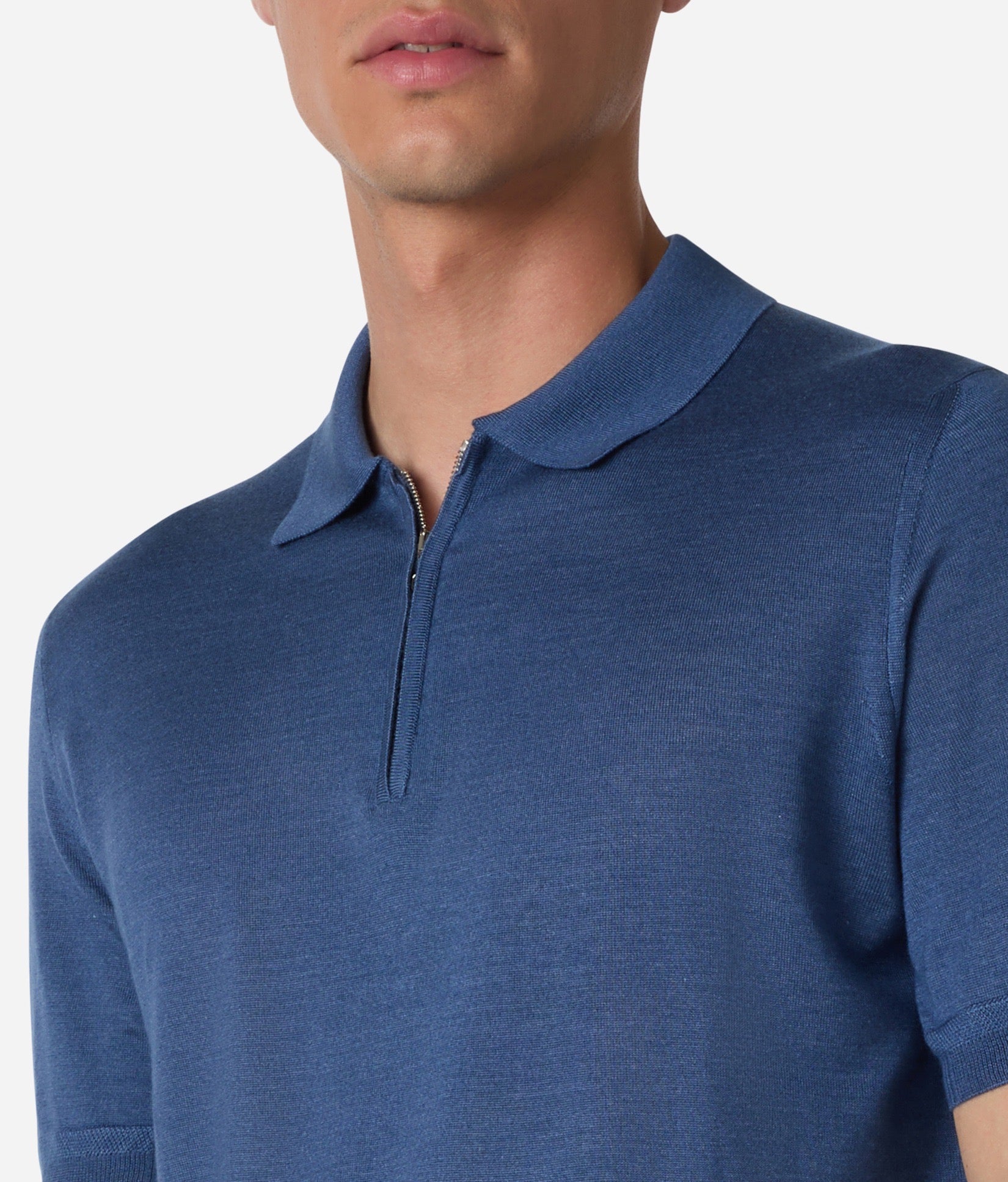 CASHMERE AND SILK SHORT SLEEVES ZIP POLO