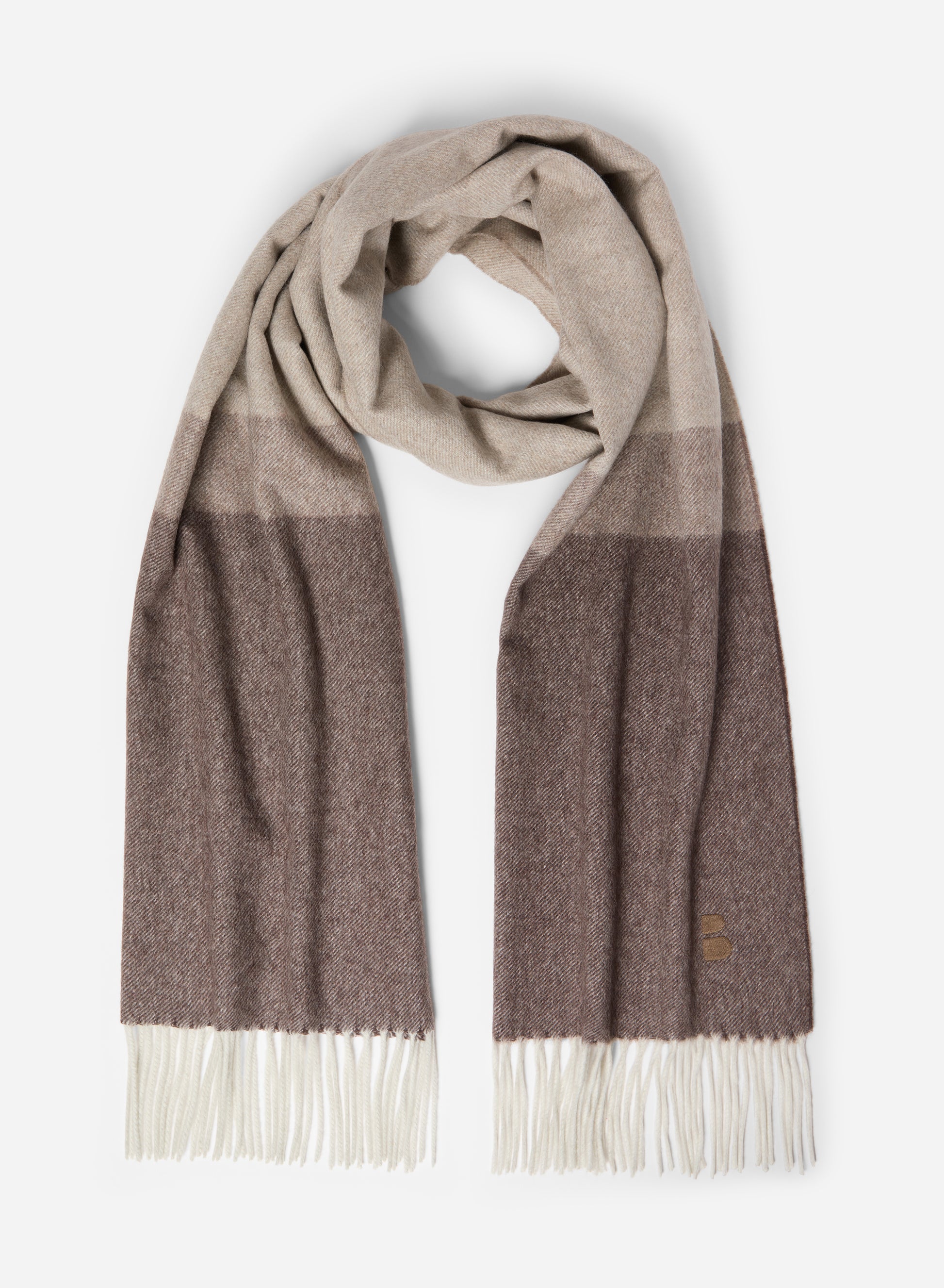 A study in tonal elegance, the Cashmere Dégradé Scarf is woven in Italy from 100% pure cashmere, offering a fluid drape that falls naturally and frames the wearer with quiet composure. Its dégradé coloring in Scone evokes the gentle shift of light across the Tuscan landscape, lending subtle depth and visual interest without distraction.