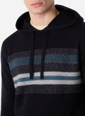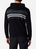 Presented in Navy, the tonal Fair Isle pattern adds subtle depth and texture, inspired by the muted richness of the Tuscan landscape. The hood and clean finishing at cuffs and hem provide structure without heaviness, reflecting a design philosophy rooted in restraint, precision, and enduring elegance.