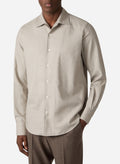 Scone evokes the soft, sun-bleached tones of Tuscany’s rolling landscapes, lending warmth and understated sophistication to the piece. Italian craftsmanship and careful finishing create a shirt that transitions effortlessly from layered styling to standalone refinement, embodying casual sophistication with every wear.