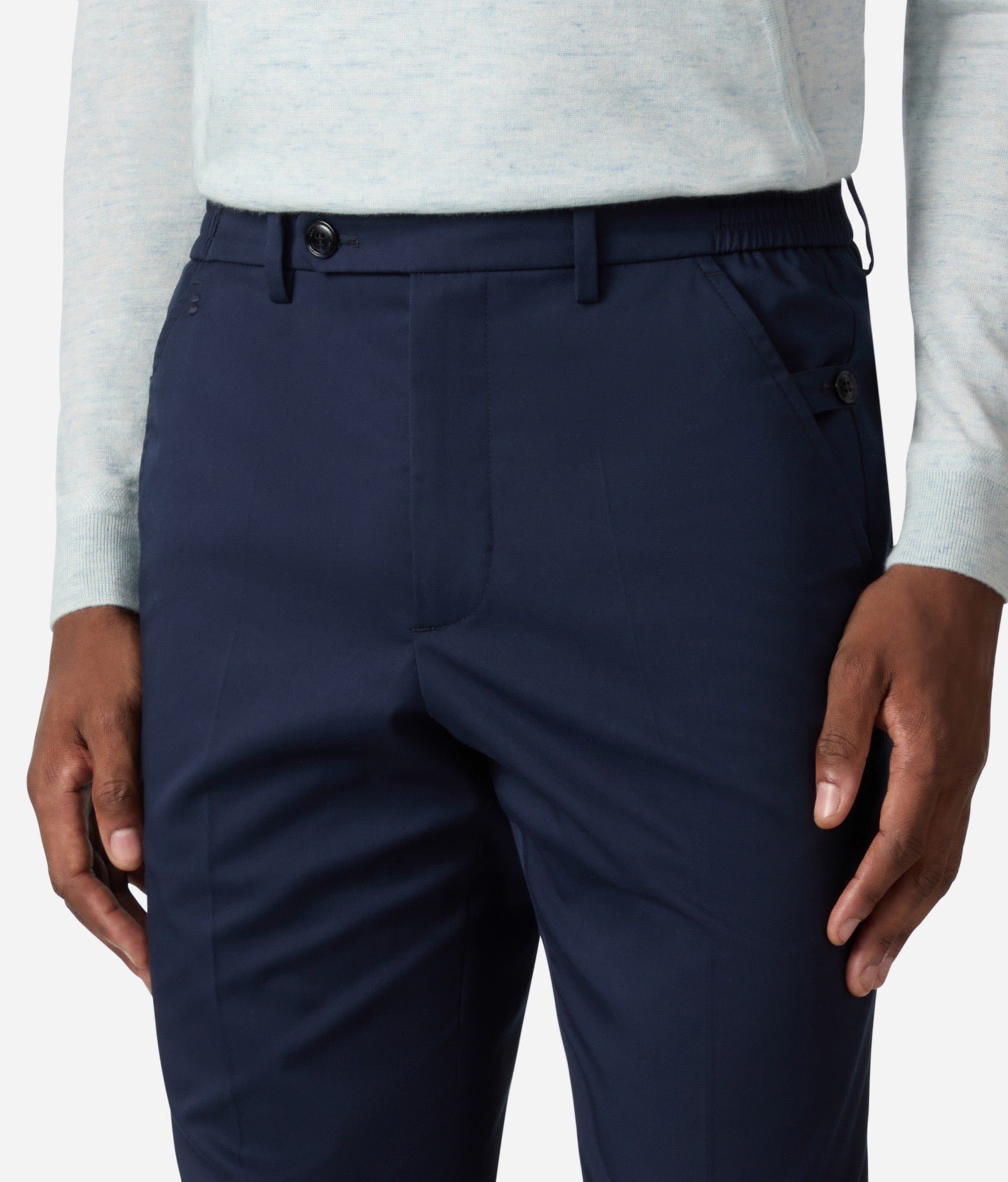Chino pants that merge formality with considered design. The cotton silk blend fabrication provides exceptional texture while maintaining structure throughout the day.