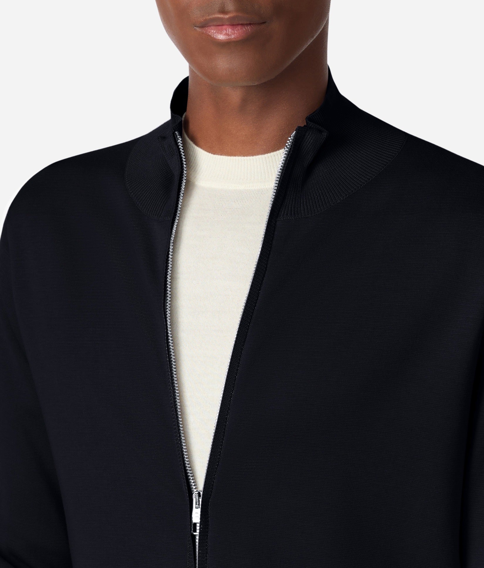 The full-zip design provides versatility for transitional temperatures, while the Italian construction ensures the garment maintains its shape and refined appearance through seasons of wear. This is contemporary layering elevated through exceptional fabrication—athletic ease meets Mediterranean sophistication.