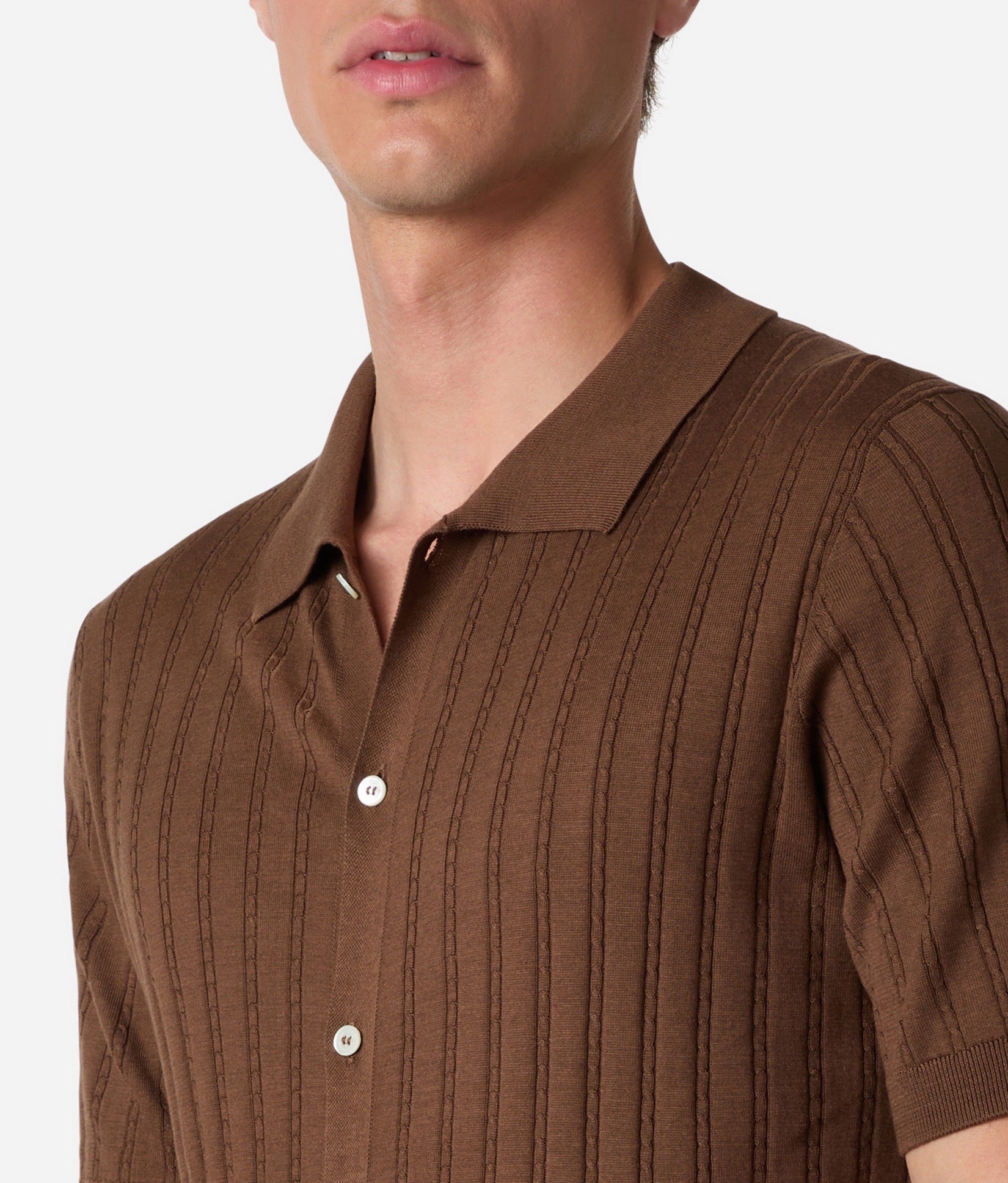 COTTON AND SILK SHORT SLEEVES CABLE SHIRT