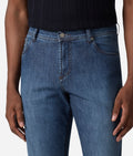 Medium Blue provides classic versatility with subtle depth. The modal and silk content softens the traditional denim texture while maintaining durability, and the small amount of elastane ensures comfort and shape retention.
