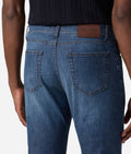 Denim reimagined through refined fabrication. The blend of cotton, modal, silk, and elastane creates jeans that offer superior comfort and sophisticated hand-feel.