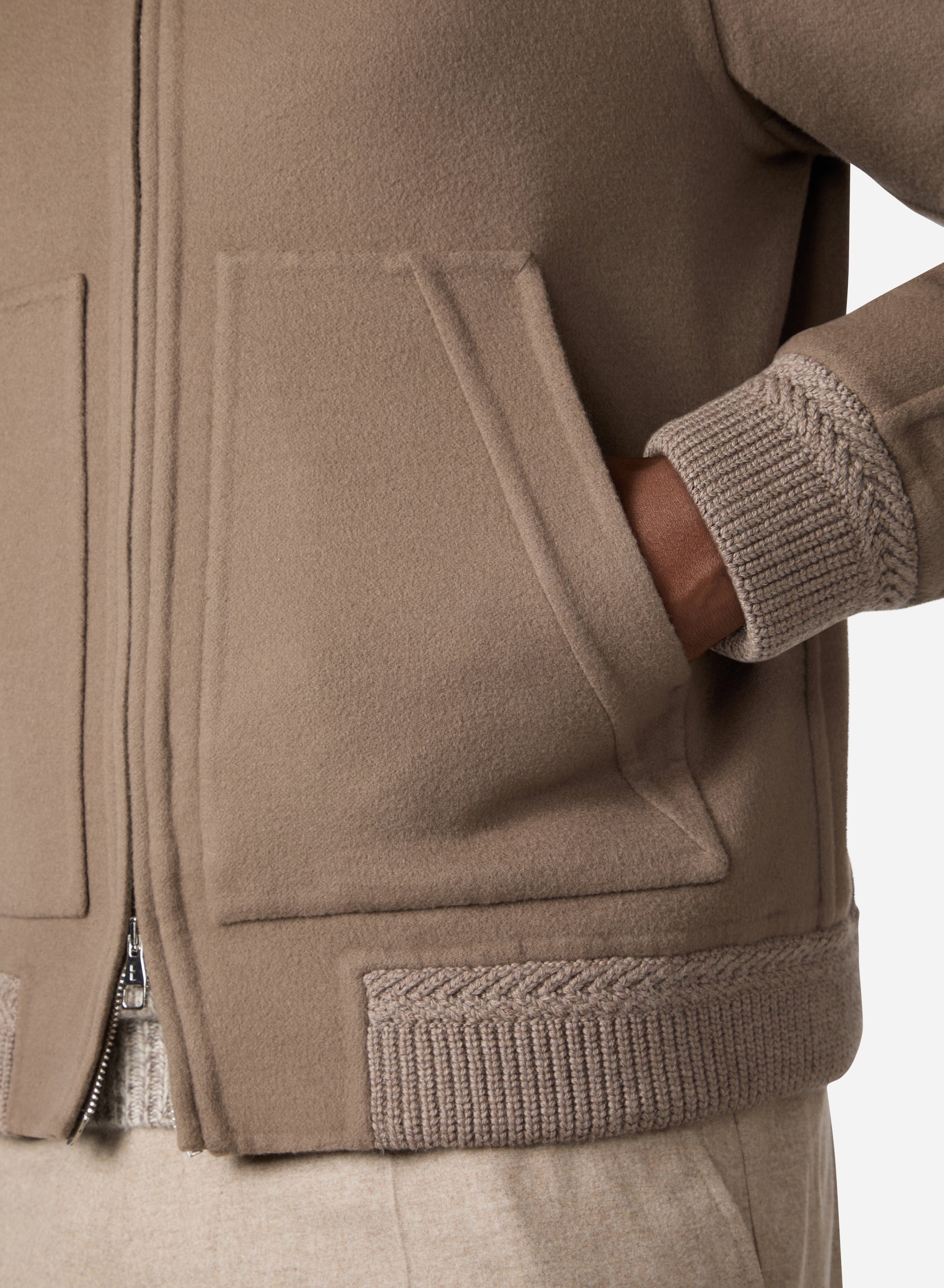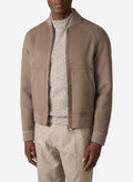 Rendered in double-faced cashmere, this bomber reimagines a casual icon through the lens of Italian refinement. The fabric’s dual-layer construction enhances warmth while maintaining an exceptionally light, supple feel against the body. Presented in Peltro and Vino Rosso, it balances muted depth with rich tonal character - equally at ease in relaxed or elevated settings.