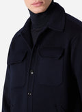 Rendered in timeless navy, the piece transcends categories - neither purely shirt nor wholly jacket - while relaxed proportions accommodate the fluid demands of modern life without sacrificing structured elegance. Every detail reflects meticulous care: seams lie flat like still water, and proportions flatter effortlessly, expressing silent, understated confidence.