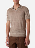 LINEN AND SILK SHORT SLEEVES V NECK POLO