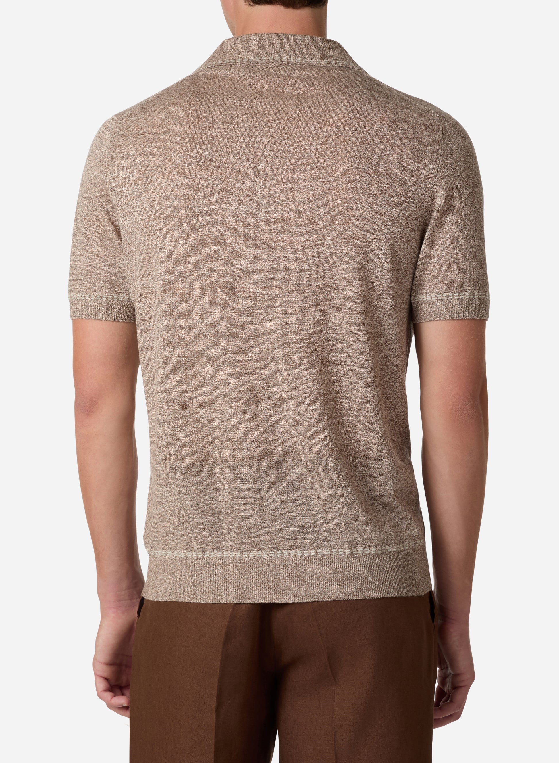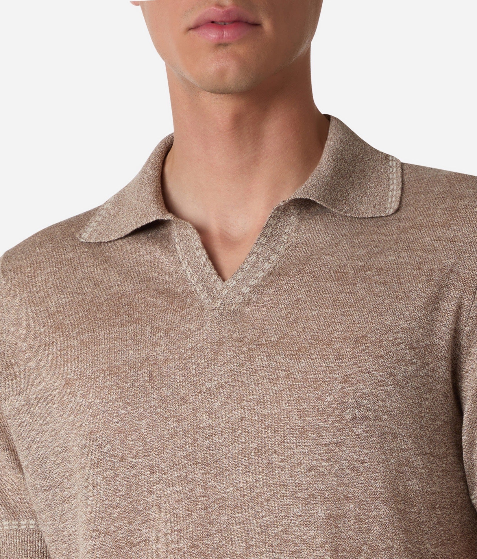 The V-neck polo reimagined through luxurious linen and silk. Crafted from linen and silk, this piece offers exceptional breathability with refined elegance.