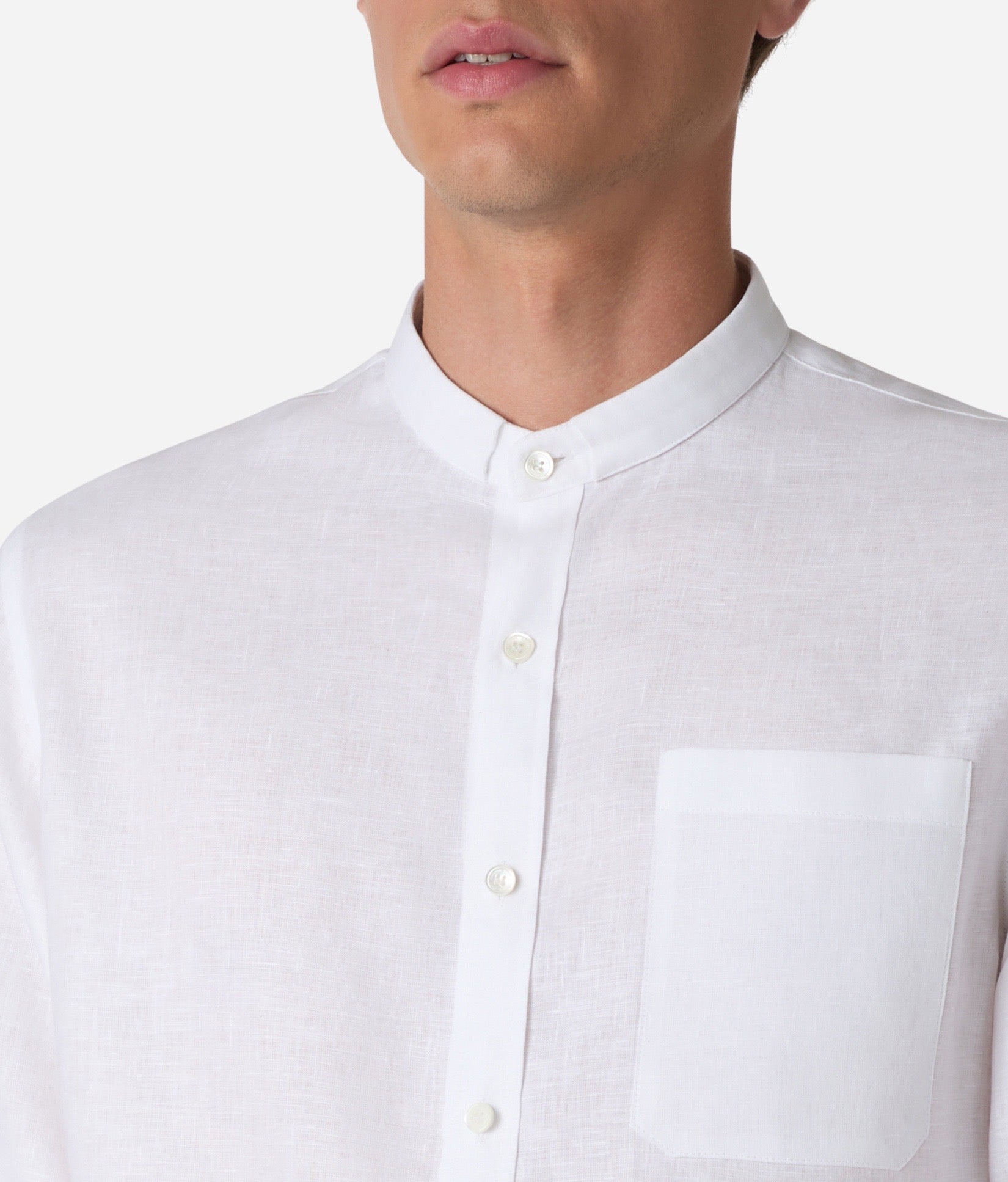 LINEN BAND COLLAR SHIRT