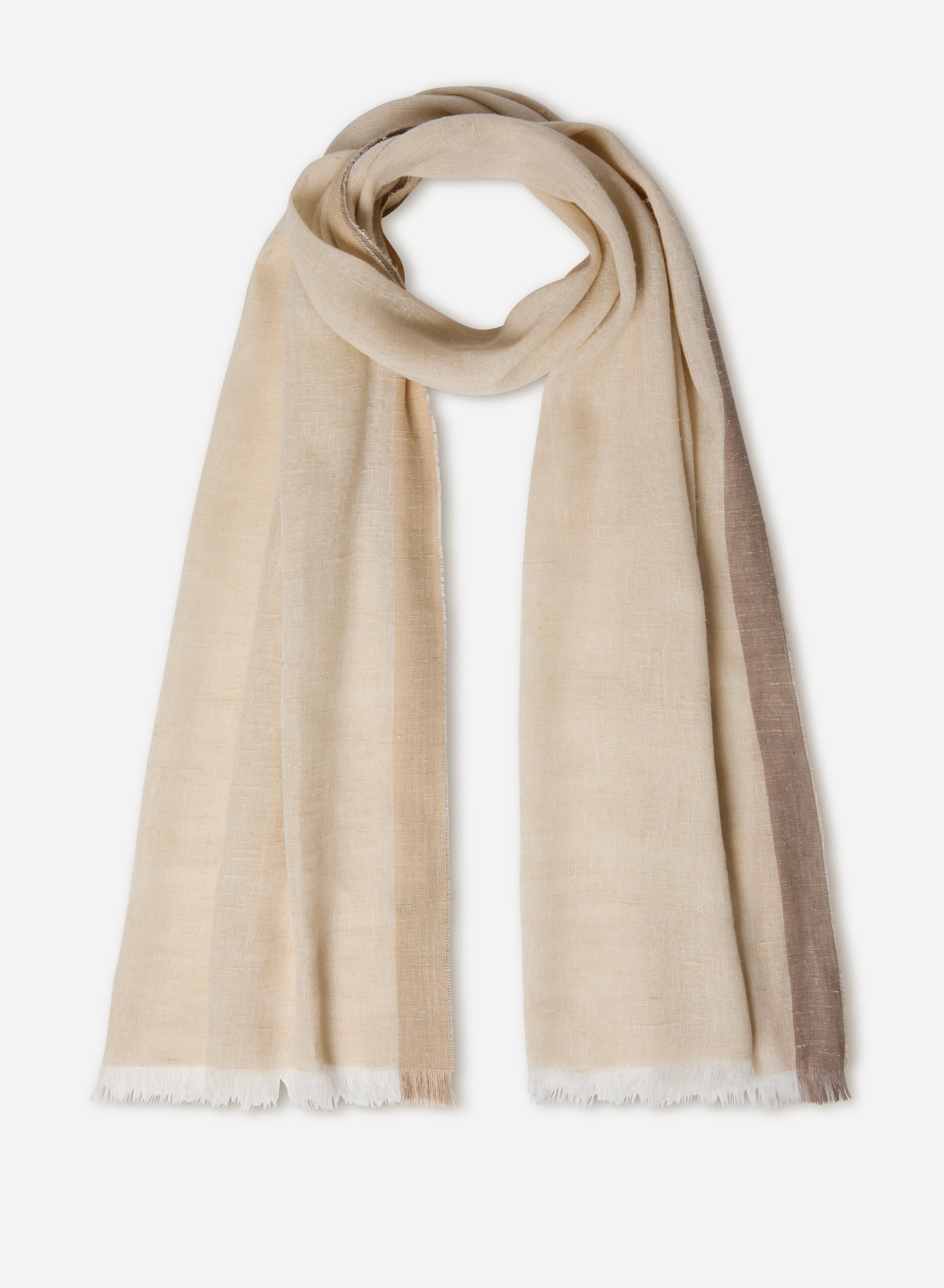 A scarf crafted from silk and linen using fabrication, offering unique texture and exceptional drape, creating an accessory that adds sophisticated finishing to any ensemble.