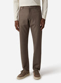 A tailored 5-pocket silhouette merges casual ease with structure, offering a versatile foundation for both elevated and everyday dressing. The superfine merino wool provides natural breathability, a soft hand-feel, and subtle stretch for comfort and enduring shape.