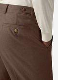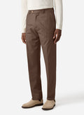 Tailored for ease, these flat-front pants combine structured elegance with effortless comfort. The superfine merino wool offers natural breathability, a soft hand-feel, and subtle stretch, allowing fluid movement while maintaining shape.