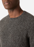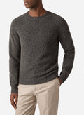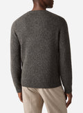 This crewneck is crafted from cashmere using a twist construction that intertwines multiple yarn shades to achieve rich visual depth and texture. The Grigio Scuro tone blends grey and espresso hues, resulting in a sophisticated marled finish that enhances the knit’s dimensionality.