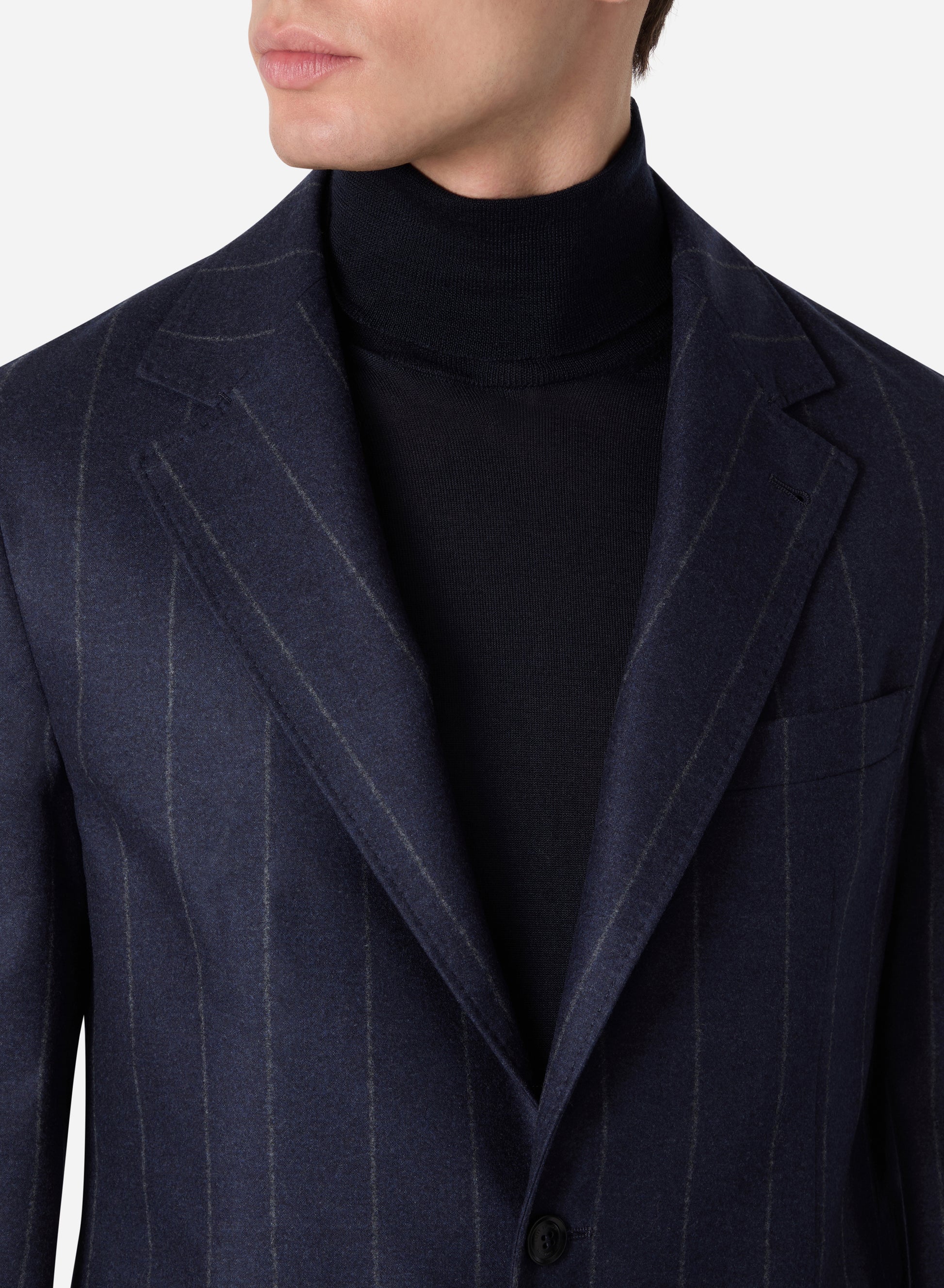 WOOL SILK CASHMERE PINSTRIPE BLAZER